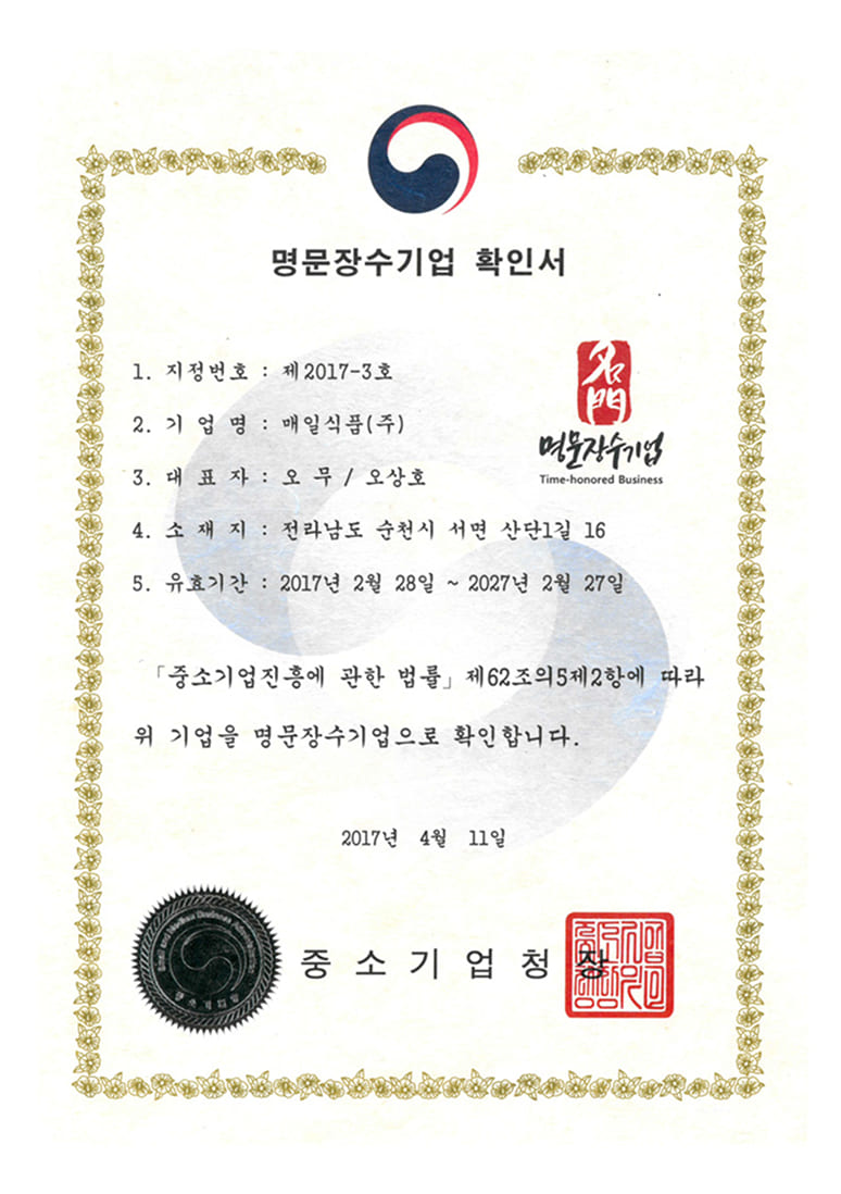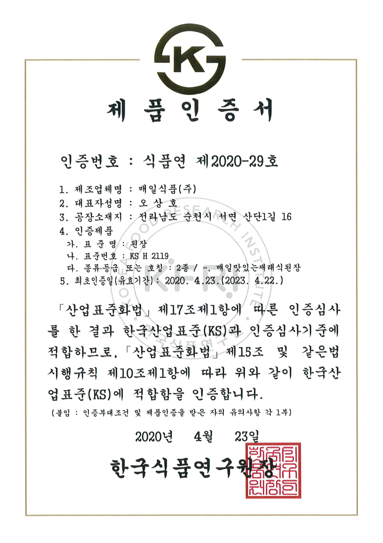 80년 전통의 장맛으로 국내외에서 인정받은 매일식품,